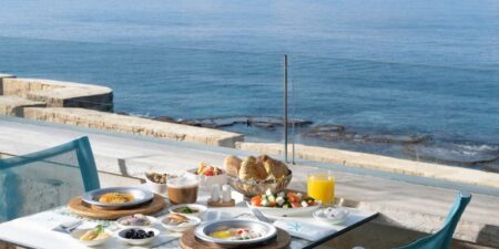 על גג המבנה המרכזי של עכותיקה נמצאת מסעדת לוטוס שמגישה בכל בוקר ארוחת בוקר עכואית מסורתית משובחת ומבראנץ’ מפנק.